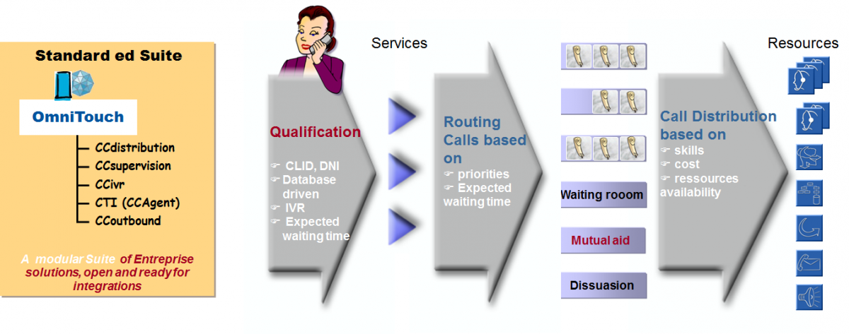 Để đem lại sự hài lòng cho khách hàng, ngay từ thời điểm bắt đầu tương tác với khách hàng cần có được sự phúc vụ nhanh nhất, đi kèm là hệ thống đa phương tiện hỗ trợ điều khiển truy nhập. OpenTouch™ Customer Service đáp ứng đầy đủ yêu cầu này.